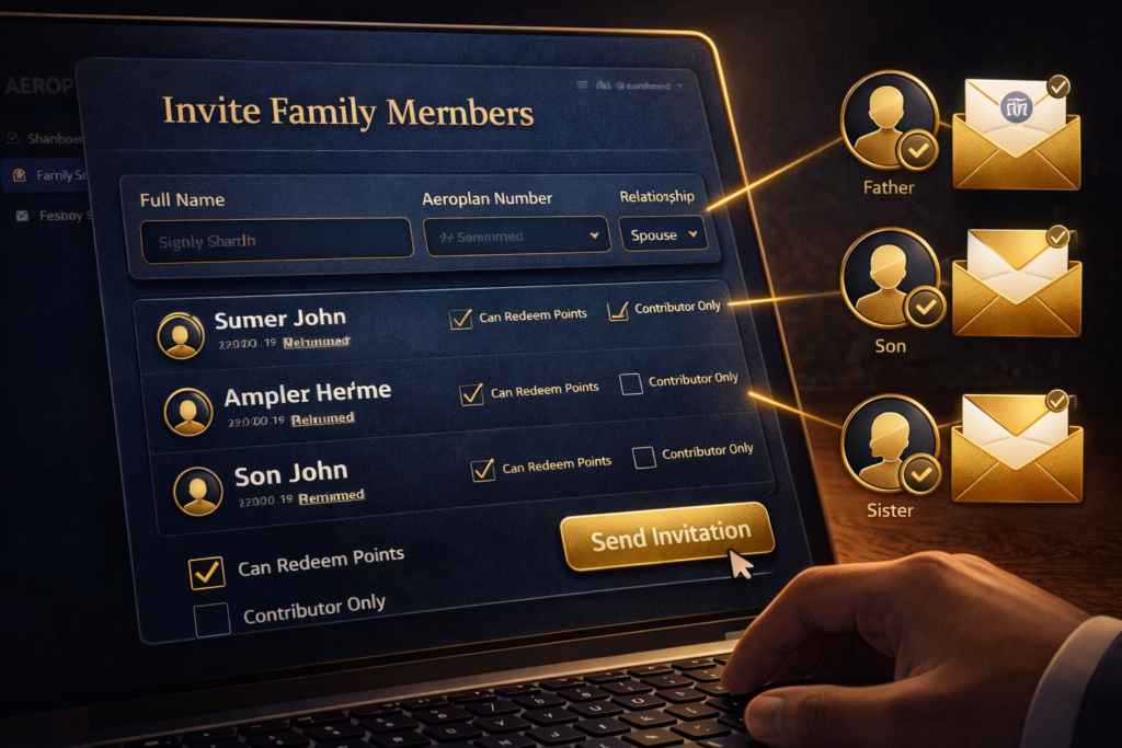 - Each invitee logs in to their Aeroplan account, finds the invitation, and accepts.